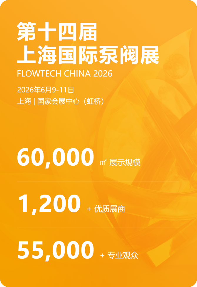 作為全國最大泵閥展,第十四屆上海國際泵管閥展覽會(簡稱:上海國際泵閥展)將于2026年6月9-11日在上海國家會展中心(虹橋)隆重舉辦,60,000㎡的展示規模將匯聚1,200多家優質展商,預計將吸引55,000多名專業觀眾到場參觀采購。 2026年上海國際泵閥展將繼續發揮自身專業優勢,通過高效的貿易對接,為全球泵閥企業搭建高品質、專業化的國際交流展示平臺,實現合作共贏的發展目標。