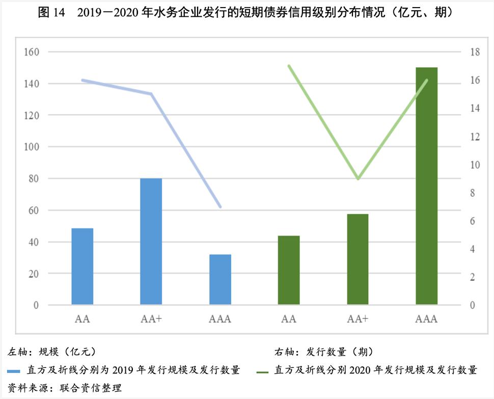 整體來看,水務(wù)企業(yè)選用短期債券進(jìn)行融資的頻率及規(guī)模有所增加,發(fā)行規(guī)模的增長(zhǎng)主要來自aaa主體所發(fā)的短期融資券及短期公司債。2020年全年累計(jì)使用短期債券融資較大的企業(yè)為水發(fā)集團(tuán)有限公司(65億元)和廣東粵海控股集團(tuán)有限公司(50億元)。